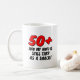 50 positivo e minha mente é ainda o encerado como uma caneca engraçada da barraca. Uma grande caneca para qualquer um sobre cinqüênta. Tenha um riso com este engraçado, presente da mordaça do aniversário. Excelente para qualquer um sobre 50 com um sentido de humor!