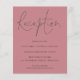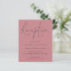 Recepção de Script Orçamentário Detalhes de Casamento de Rosa Dusty. Um alternativo de 4,5 pol x 5,6 pol com preço inferior. Disponível em um STOCK DE CARTÃO SEMI GLOSS 110 lb, que é a opção padrão (recomendada para convites), OU um STOCK DE PAPEL THINNER SATIN FINISH 80 lb (ideal para gabinetes). Os envelopes são um extra opcional e são ligeiramente maiores que o tamanho da placa. Um roteiro elegante para o título e o resto do texto que você pode personalizar facilmente.