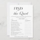 Apresentando o cartão de jogo de Chá de panela preto e branco minimalista "Find the Guest" (Encontre o convidado), projetado por CaMiDesigns. Este jogo elegante adiciona um elemento divertido e interativo a qualquer chá de panela, encorajando os convidados a misturar-se enquanto buscam fatos únicos uns sobre os outros. Com seu elegante design preto e branco, ele complementa qualquer tema de chá de panela, fazer-o como na moda para sua celebração. Para obter assistência com pedidos, envio, informações sobre produtos e muito mais, entre em contato diretamente com o Atendimento ao Cliente da Zazzle.