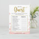 Este moderno jogo de chá de panela "Find the Guest" floral apresenta um fundo floral cor-de-rosa com cinzas de brilho do ouro. O texto é escrito em uma mistura de uma fonte de caligrafia divertida e uma fonte moderna de sans, esta opção Find the Guest é personalizada com o nome do futuro noivo e a data do Chá de panela.