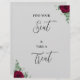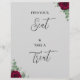 Encontre seu lugar e pegue um sinal de casamento de rosa vermelha de gêmeos Designs é uma adição ideal a qualquer cerimônia de casamento. A design apresenta um pano de fundo de cinza, folhagem verde e flores vermelhas.