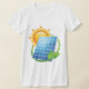 Todos nós precisamos de energia e a energia solar é uma boa opção. Aproveite o poder do sol. Esta design é sobre energia solar com um painel solar captando a luz do sol brilhante. Este design de energia solar parece excelente nesta camiseta feminina. Perfeito para si mesmo ou como presente