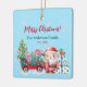 Ornamento de Natal Personalizado: Fantasia em Aquarela de Inverno com Papai Noel e uma tipografia "Feliz Natal!" em letra cursiva
