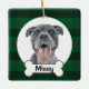 Este enfeite de pit bull / staffy cinza é um ótimo presente! O fundo xadrez verde combina com toda a decoração de Natal. O cachorro foi pintado à mão por mim e disponibilizado como este adorável enfeite! Personalize o texto para tornar o presente ainda mais especial. Visite minha loja para muitas outras variações desta obra de arte e outros fundos de Natal, incluindo xadrez vermelho e verde e xadrez búfalo vermelho.