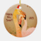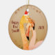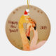 Linda decoração de Ano Novo com pássaros flamingo, chapéu de Papai Noel e flocos de neve. Fácil de adicionar texto personalizado e ano.