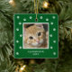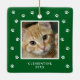 Celebre seu amigo peludo neste feriado com o adorável Enfeite de Natal com Foto do Animal de Estimação com Pegada. Projetado com um fundo verde escuro festivo e pegadas brancas espalhadas alegremente em torno de uma foto do seu animal de estimação, este enfeite será um lindo souvenir para os amantes de animais. Adicione a foto do seu animal de estimação, nome e ano para criar um enfeite de árvore de Natal precioso que destaca seu companheiro felino ou canino querido.
