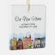 Celebre a alegria de um novo começo com este enfeite de Natal em cerâmica lindamente trabalhado, projetado especialmente para corretores de imóveis oferecerem como um presente de encerramento atencioso e duradouro. Este enfeite quadrado apresenta uma encantadora ilustração em aquarela de uma vizinhança suburbana ao longo da borda inferior da frente, adicionando calor e charme. Acima, a frase "Nossa Nova Casa" é escrita de forma elegante em uma fonte cursiva moderna, enquanto o centro exibe o endereço personalizado da propriedade, tornando-o um souvenir pessoal para a primeira temporada de festas dos seus clientes em seu novo espaço.