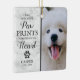 Decoração de árvore de Natal memorial de animal de estimação com foto do seu cão ou gato querido, fundo de mármore branco moderno, uma pegada com um coração, uma citação de simpatia que diz "você deixou suas pegadas para sempre no meu coração", além do nome e datas. Coloque-o na sua árvore de Natal ou em qualquer lugar da sua casa, este enfeite faz um presente único para alguém especial.