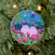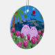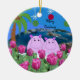 Um fundo tropical divertido com bolas de Natal, uma palmeira, muitos tulipas e dois hipopótamos felizes adoráveis!
