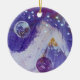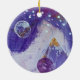 Luagens e estrelas flutuam sobre uma montanha nevada em um mundo abstrato.