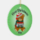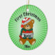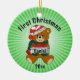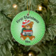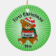 Um ursinho marrom doce em um fundo de explosão verde com nome e data personalizáveis na frente e atrás. A fonte e a cor do texto também podem ser alteradas.