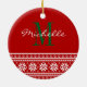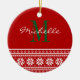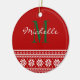 Enfeite de Natal redondo personalizado com monograma para amigos, familiares, colegas de trabalho, professores, funcionários, casal de noivos, recém-casados, marido e mulher, noiva e noivo, etc. Modelo de tipografia elegante para monograma de nome. Ideia de presente de decoração de Natal personalizada e fofa para ele e ela. Acessórios de Natal elegantes e vermelhos e verdes com padrão de floco de neve "suéter feio de Natal" nórdico. Adicione nomes em ambos os lados. Altere a quantidade para obter o preço de atacado barato. Inclui cordão dourado brilhante.