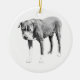 Um souvenir dimensional em tons de cinza que se encaixa em qualquer tema. A postura fiel fotografa lindamente entre luzes e fitas. Um favorito anual para lares que amam cães.