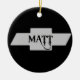Enfeite com a inscrição Matt em um emblema da chevy.