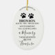Enfeite de árvore de Natal memorial de pet com foto do seu animal querido, uma citação de pesar que diz "quando alguém que você ama se torna uma memória, essas memórias se tornam tesouro", marcas de patas, o nome do seu cão ou gato e a data de nascimento e morte. Coloque-o na sua árvore de Natal ou em qualquer lugar da sua casa, este enfeite é um presente único para alguém especial.