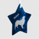 Seu cachorro pode ter seu próprio enfeite de estrela personalizado no Natal! Este enfeite apresenta uma imagem em silhueta prateada de um cão Australian Shepherd cercada por um céu noturno estrelado azul. O nome do seu cão ou outro texto está em prata correspondente à esquerda da imagem. A parte de trás do enfeite tem o mesmo fundo de céu estrelado, e texto para você personalizar. Isso também faz um belo enfeite comemorativo para lembrar um cão que já se foi.