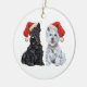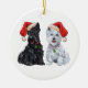 Este enfeite Scottie & Westie ficará ótimo na árvore de Natal e durante todo o ano! Compre um para você ou para aquele amigo que ama Scottie! Criado a partir da minha arte original, este Terrier Escocês certamente agradará!