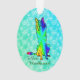 Enfeite Colorido Silken Windhound com fundo de floco de neve verde e azul.