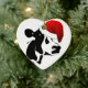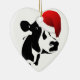 Enfeites de natal mostrado em forma cardíaca com um impressão branco e preto giro. Personalize este item ou comprar como está.