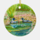 As natações do bebê marrom felpudo entre os seus pais amorosos. Quase invisível aos olhos, filhote investiga as plantas de água florescentes. Pintado por Pamela Halock da Coleção de Cadeias da Baía Georgiana de 2019.