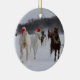 A cena bonita e do divertimento de cavalos running faz uma adição perfeita a toda a árvore de Natal.