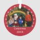 Ornamento vermelho da foto do Natal com flocos de neve e texto feito sob encomenda