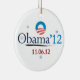 Nossos enfeites de natal 2012 de Obama são a maneira comemorativa perfeita da ideia e do divertimento do presente de Obama de comemorar a re-eleição histórica do presidente Obama! Dobre características de design tomadas partido o sinal icónico da campanha de Obama com texto em azul e no vermelho, juntados com silhueta de Obama e assinatura no verso. Discontos de volume disponíveis! Presente ou obtem este para o senhor mesmo.