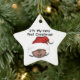 Você pode facilmente mudar o ano neste personalizável ornamento de natal do African American Baby 1rua antes de fazer pedidos. Possui um bebê em um boné vermelho e texto no estilo de criança que diz "É o meu Primeiro Natal!".