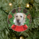 Para o amante de labrador retriever - este ornamento da grinalda do feriado do Natal será grande para toda a árvore! Adicione seu nome ou o ano de animal de estimação sobre o arco vermelho na parte inferior para a personalização feita sob encomenda, ou adicione seu próprio texto à parte traseira.