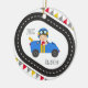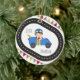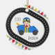 Adicione diversão festiva à sua árvore com este Enfeites de natal de garotinho de corrida azul apresentando um garoto moreno bonito em um carro azul brilhante com sotaques amarelos, bandeiras cheias e beliche colorido. Uma alegre manutenção para pequenos fãs de corrida, este ornamento pode ser personalizado com o nome e o ano do seu filho. Perfeito como um gafanhoto, decoração de árvores, ou presente para futuros corredores, é uma maneira divertida de trazer personalidade e velocidade às tradições de feriado de sua família.