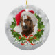 Cabra Adorável de Boer Bebê Pintura personalizada de gata de GetYerGoat™ Todos aprisionados em seu Chapéu Santa, cercada por uma coroa de Natal verde de Holly sobre um fundo de ouro de um lado e o fundo de Silver Bokeh do outro lado - Personalize a saudação que diz Feliz Natal de um lado, personalize o nome do rebanho, o nome da fazenda ou o nome da cabra (OU QUALQUER PALERRA) como bem como o ano do lado oposto - Enfeites de natal de Capa para a doação de presente de Férias, enfeites de árvores de Natal ou de janelas - designs duplos de lado e podem ser personalizados. Perfeito para trocas de ornamento em festas de Natal, presentes de Criador, presentes de veterinário, Mostrar presentes.