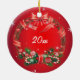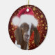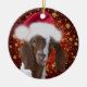 A mão pintou o retrato desta cabra bonito Boer em seu Chapéu Santa - em um fundo vermelho profundo com flocos de neve de ouro cintilante. Enfeites de natal de Capa para a doação de presente de Férias, enfeites de árvore de Natal ou enfeites de janela- personalize a data no verso