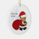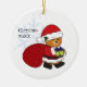 Enfeites de natal bonitos, customizáveis que caracterizam este urso de ursinho adorável do papai noel. Está toda pronto em seu casaco vermelho, chapéu, botas, e está levando seu saco grande dos presentes! Personalize o texto como você gosta, ou apague-o. Tomam partido duas mostras uma árvore decorada dos presentes e do texto mais customizável.