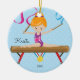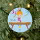 Personalize & os enfeites de natal datado que caracterizam um gymnast vermelho bonito do cabelo que faz uma separação em um feixe de equilíbrio ajustado em um fundo azul das bolinhas com uma fita #1. Um presente do Natal da maravilha sure a ser estimado por muitos próximos anos.
