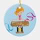 Personalize & enfeites de natal datado, menina vermelha bonito do gymnast do cabelo que faz uma separação em um vault ajustado em um fundo azul das bolinhas com uma fita #1. Um presente do Natal da maravilha sure a ser estimado por muitos próximos anos.