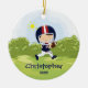 Enfeites de natal azuis & vermelhos datado do esporte do jogador de futebol. Um presente do Natal da maravilha sure a ser estimado por muitos próximos anos.