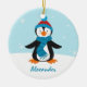 Um ornamento adorável com pinguim bonito, está vestindo um chapéu do vermelho azul e um lenço azul. Ilumine acima dos feriados com este ornamento adorável. Alguns gráficos: pelo design de Prettygrafik