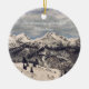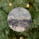 Belo ornamento com pintura de montanha de neve para sua árvore de natal. "Estou sonhando com um natal branco" na frente.