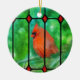 Em lindas cores de Natal, este ornamento representa um cardeal glorioso e vermelho sentado fora de uma janela de vidro manchado.