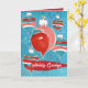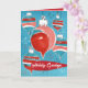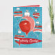 Cartões de natal Cartão de Natal com ornamentos coloridos desenhados à mão com tinta preta e pintados com aquarela em tons de vermelho, azul quente e cor-de-salmão rosa com padrão de estrela atômica sobre fundo de lavagem com aquarela. No dentro, há um tom brilhante de vermelho com texto que você pode editar para ajustado das suas necessidades.