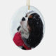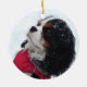 Este é um Enfeites de natal redondo com uma fotografia original de um adorável Cavaleiro Tricolorido Rei Charles Spaniel, saltando em flocos de neve caindo em seu rosto!