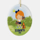 Personalize o Enfeites de natal de Aplausos de de Cheerleader vermelho-branco-preto laranja-preto-e-branco-datado em uma grama com fundo de árvore. Um ornamento de torcida apresenta um cheerleader bonito segurando pom com um megafone. Um presente de Natal Maravilhoso que certamente será precioso por muitos anos.