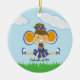 Este é um Enfeites de natal adorável para esse cheerleader na sua vida! É um cheerleader fofo com cabelo castanho comprido na cauda de um pônei com fitas laranja e azuis no cabelo. Ela está segurando dois pom nas mãos. Ela está vestindo um uniforme laranja, azul e branco. Ela é O fundo é azul claro com nuvens no céu. Ela está pulando no ar fazendo um toque no dedo. Veja os muitos outros designs e cores nesta linha. Mantenha essa vigilância por muitos, muitos anos! ©JW Ilustrações