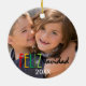 Adicione sua foto favorita do ano anterior a estes 2 tomou partido enfeites de natal espanhóis. O design de Feliz Navidad usa cores brilhantes e tipografia misturada para um presente moderno do divertimento. Cartão e acessórios de harmonização do feriado na loja de Bilingual_Designs. Estúdios de Storytree do © da fotografia, Stanford, CA