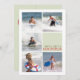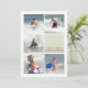 Prendendo Enfeites de natal contra um fundo verde-claro no verso deste cartão com fotos de dois lados. Colocação de várias fotos no lado frontal. Sala para personalização na parte de trás e na frente.