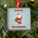 Enfeites de natal com Papais noeis segurando um saco de brinquedos, com um fundo de canas doces. Obrigados à Hungryjpeg para alguns dos elementos do design.