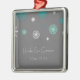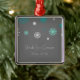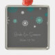 Ornamento feito sob encomenda do nome e da data do casamento no inverno no cinza de carvão vegetal escuro elegante e moderno, no teste padrão festivo azul e branco da cerceta do aqua de turquesa dos flocos de neve. Um presente à moda do Natal para a família e os amigos ou para decorar sua árvore ou casa de Natal para os feriados. A maneira perfeita de recordar seu dia de casamento no inverno.