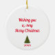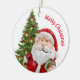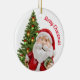 Este Enfeites de natal apresenta um Papai noel querido com uma árvore de Natal e atrás uma saudação. Personalize este ornamento com seu próprio texto. Um ornamento como este seria um presente pensativo para uma criança.