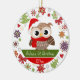 A coruja está nas máscaras de bege e de castanho chocolate com papai noel vermelho chapéu e lenço. Os vários ornamento em vermelho, alaranjado, limão, roxo estão no fundo. Os textos e a coruja são customizáveis. A parte traseira do ornamento é tem a mesma imagem de fundo e os textos são customizáveis também.