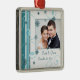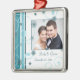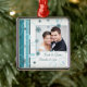 O ornamento da foto do casamento no inverno customizável com sua própria foto do casamento e o casamento datam na turquesa elegante e no branco com teste padrão festivo do floco de neve. Um presente à moda do Natal para a família e os amigos ou para decorar sua árvore ou casa de Natal para os feriados. A maneira perfeita de recordar seu dia de casamento no inverno.